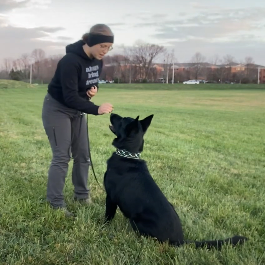 Make sure you use treats that are easily visible to your dog. On a flat surface such as hardwood flooring or asphalt (that way there’s minimal treat searching!)